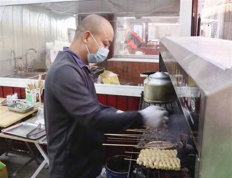 炒粉伴著滋啦作響的油爆聲在鍋中“跳躍”,燒烤師傅撒下的孜然和辣椒裹滿肉粒……一道道美食在吃貨們期盼的目光中上桌,來(lái)一杯冰鎮(zhèn)汽水或冰啤酒,盛宴就此開(kāi)始……