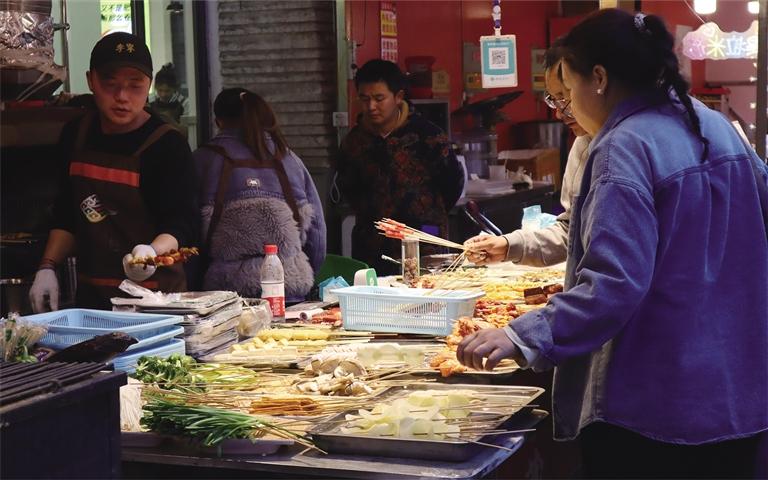 “在明亮寬敞的商場(chǎng)里逛得有些審美疲勞,但又實(shí)在留戀夏夜的舒適,所以才來(lái)到商場(chǎng)外的金街上,在大大小小的宵夜攤前一邊品嘗著各種美食,一邊談天說(shuō)笑,感受獨(dú)屬于鬧市的人間煙火?!笔忻襁_(dá)珍開(kāi)心地說(shuō)?!?/p>
