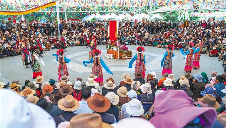 悠悠夏日,氣溫攀升,前往拉薩市宗角祿康公園消夏游玩成為不少市民和游客的選擇。6月9日,由拉薩市文化局主辦的2024年“藏戲演出季”活動在宗角祿康公園啟動?;顒訛槠?天,來自拉薩市各縣(區(qū))的5支民間藏戲團(tuán)隊(duì)將精彩呈現(xiàn)《朗薩雯蚌》《卓娃桑姆》等經(jīng)典傳統(tǒng)劇目。此外,活動現(xiàn)場搭建了購買非遺產(chǎn)品的優(yōu)質(zhì)平臺——拉薩非遺好物集市,對藏香、陶瓷、書法、酸奶、馬具、糌粑、服飾等非遺好物進(jìn)行了展銷。
