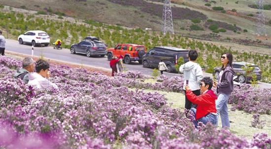 每年6月是芒康縣拉烏山野生杜鵑花的盛開期。這些杜鵑花生長在山坡上,一叢叢,一片片,在陽光的照耀下燦似朝霞,絢爛美麗,將連綿起伏的山巒點綴得更加生機勃勃。