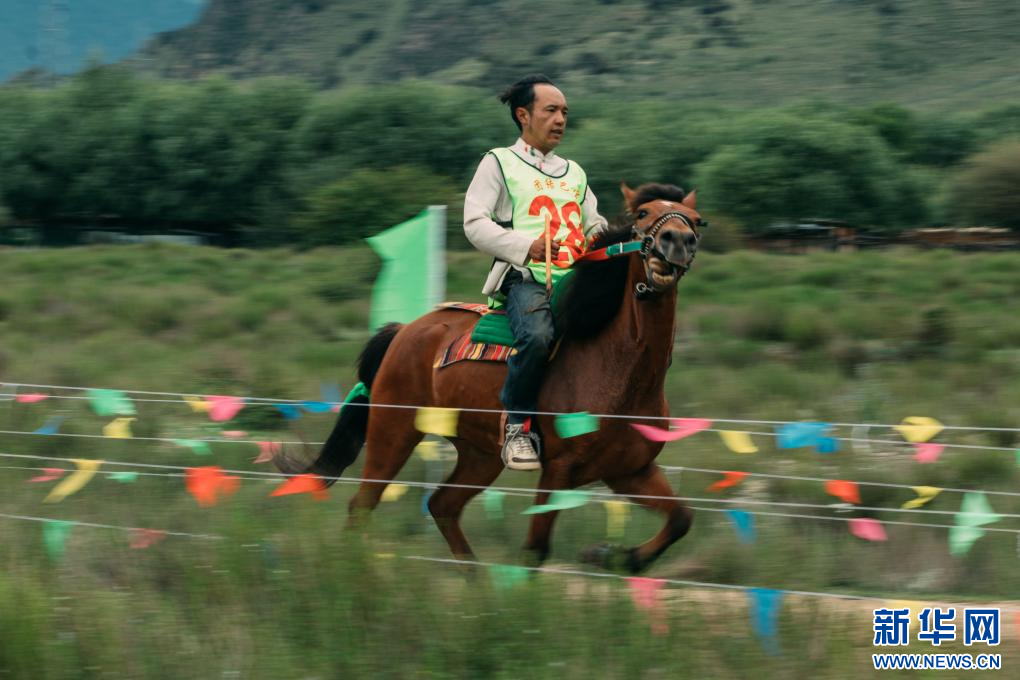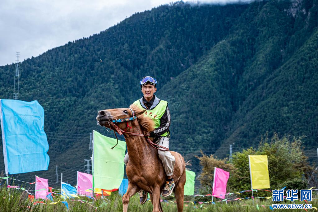 西藏林芝市林芝鎮(zhèn)第七屆尼洋旅游文化之民俗賽馬藝術(shù)節(jié)活動現(xiàn)場(7月22日攝)。新華網(wǎng) 旦增努布 攝