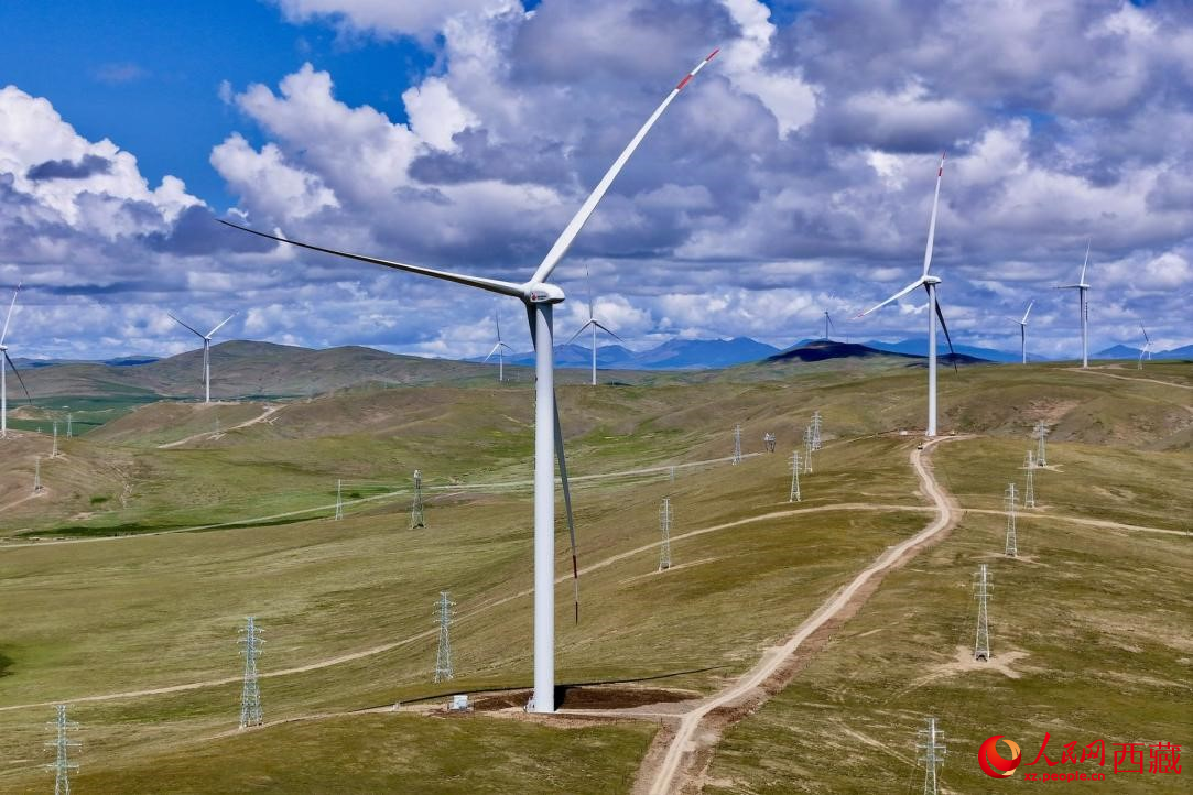 位于西藏那曲市色尼區(qū)的歐瑪亭嘎風(fēng)電場。人民網(wǎng)記者 次仁羅布攝