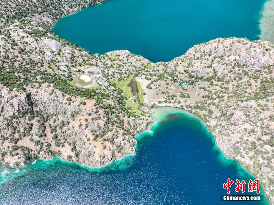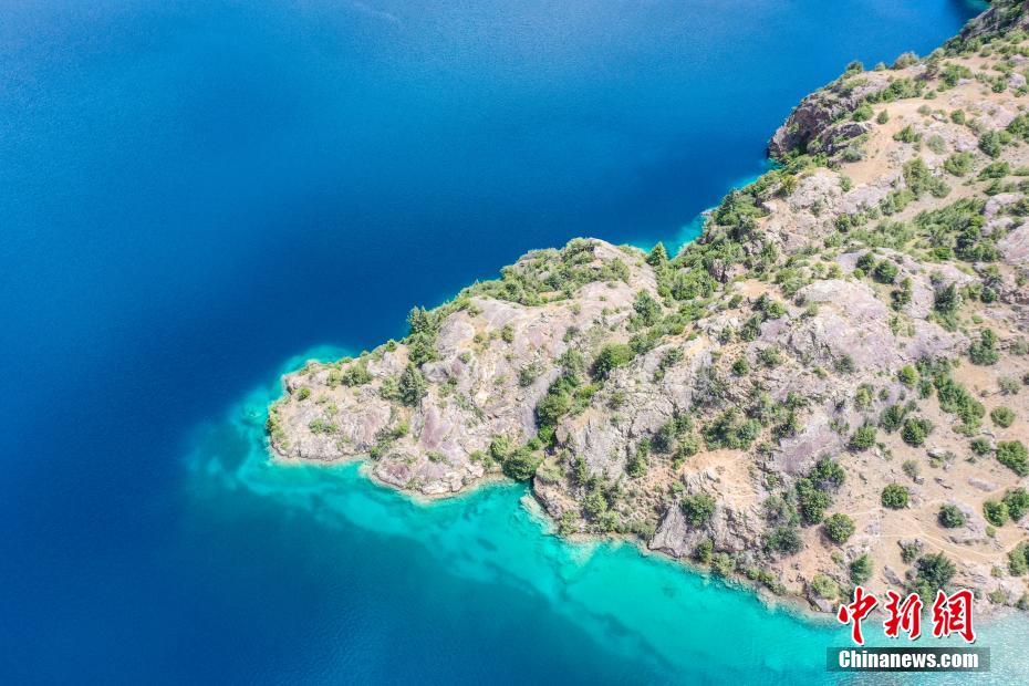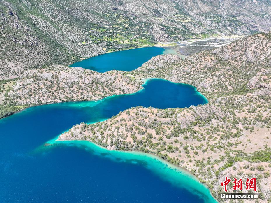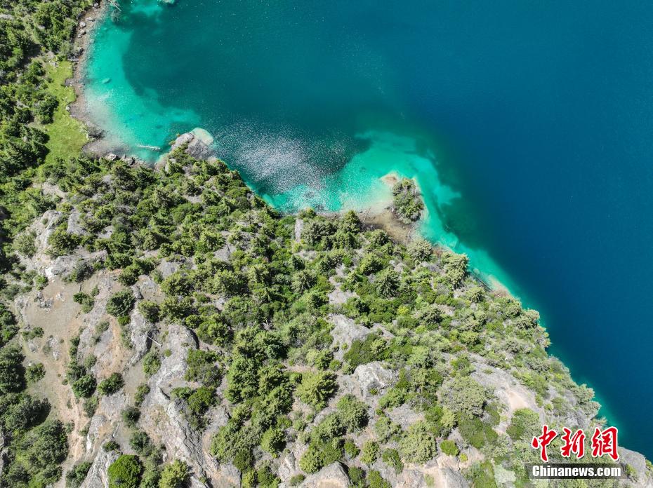 圖為三色湖一角。(無人機照片)中新社記者 貢嘎來松 攝