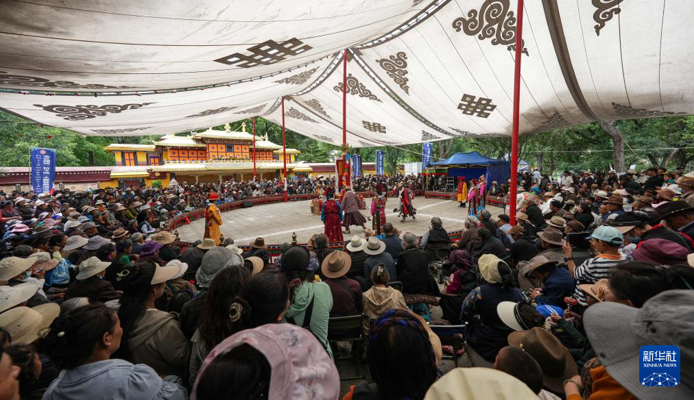 8月8日,觀眾在拉薩羅布林卡觀看傳統(tǒng)藏戲表演。新華社記者 晉美多吉 攝