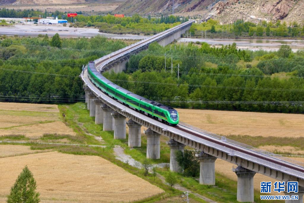 復興號動車組穿過拉日鐵路拉薩河大橋。新華社發(fā)(馬生明 攝)