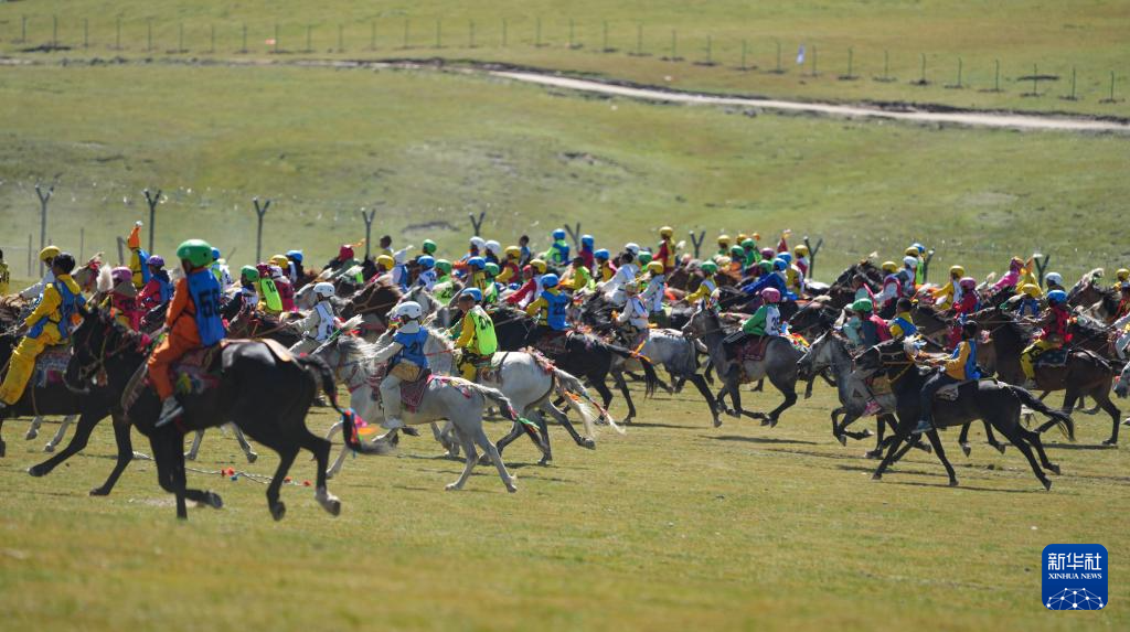 12日,10公里傳統(tǒng)大跑項(xiàng)目開(kāi)賽,上百匹駿馬在草原上揚(yáng)蹄疾奔,騎手多是十來(lái)歲的少年。15歲的普扎巴從6歲開(kāi)始做騎手,曾騎著當(dāng)?shù)卦S多名馬到各地參加比賽,拿過(guò)多次冠軍。“我相信這次也能拿第一名?!?0日,他在馬背上對(duì)記者說(shuō)。