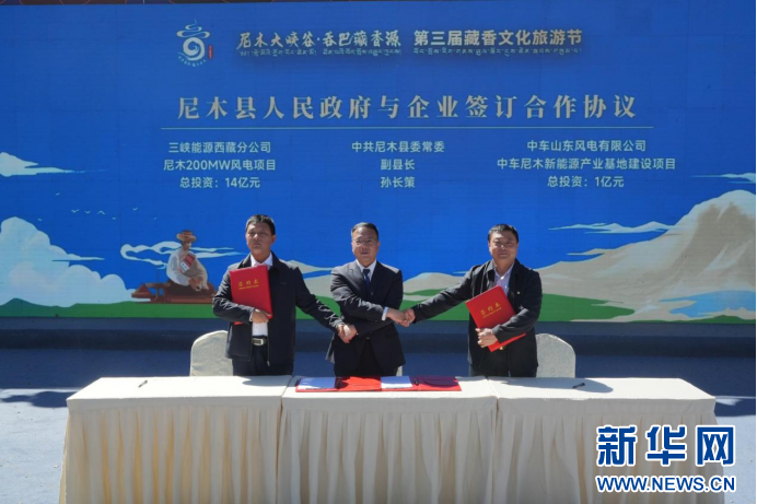 開幕式上,尼木縣委常委、副縣長孫長策與中國三峽新能源集團股份有限公司西藏分公司、中車山東風(fēng)電有限公司、拉薩明陽新能源有限公司和華電新能源有限公司的代表完成簽約儀式,達成互利共贏的合作關(guān)系。 ??