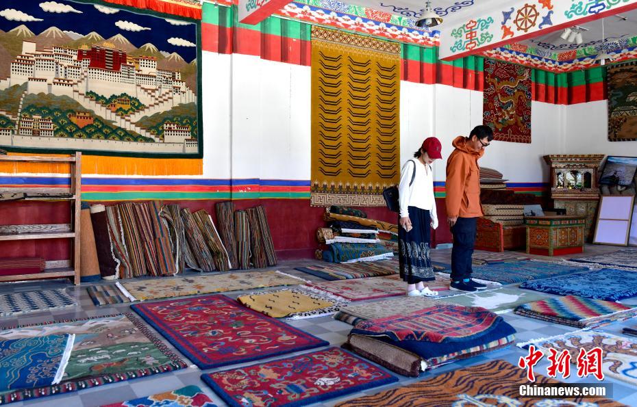 藏毯是世界三大名毯之一,以艷麗的色彩、濃厚的民族風(fēng)格、鮮明的地域特色聞名遐邇。圖為8月16日,西藏拉薩的一家藏毯廠里,游客選購圖案精美的藏毯。中新社記者 李林 攝
