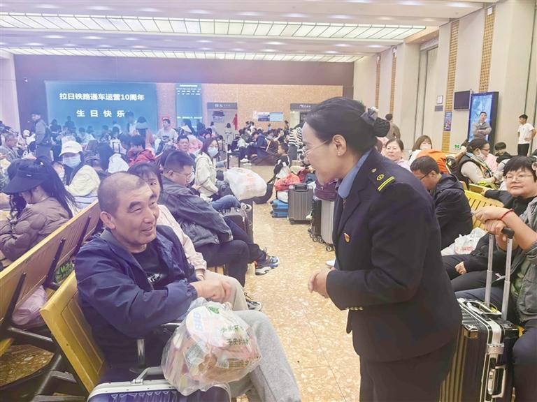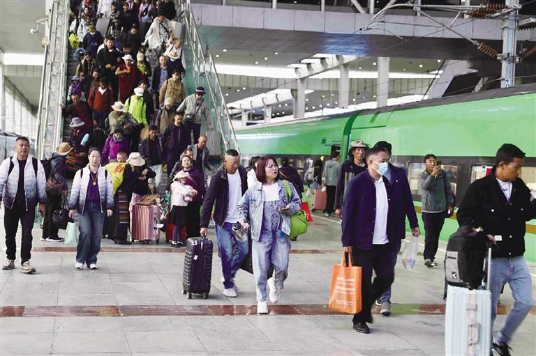 學(xué)生運輸是暑運后半程的運輸重點,青藏集團公司針對青藏兩省區(qū)上萬名內(nèi)高班學(xué)生返程的實際需求,暢通與地方教育部門以及各大高校招生部門溝通,提前掌握在讀學(xué)生返校及新生入學(xué)時間,針對學(xué)生旅客集中出行的實際,加大學(xué)校集中地區(qū)的票額供給,加強出行服務(wù)保障力度,在售票廳、自助售(取)票機、檢票口等處所增加引導(dǎo)力量,動態(tài)增開人工驗票、驗證通道,組織志愿者幫助學(xué)生旅客進行優(yōu)惠資質(zhì)核驗,提供乘車指引、愛心搬運等暖心服務(wù),多措并舉保障廣大學(xué)生旅客順利返校。緊緊把握今年暑期跨省及青藏兩省區(qū)的“旅游熱”,青藏集團公司精心設(shè)計開發(fā)客運產(chǎn)品,相繼開行了4趟新疆方向旅游專列,全程開行青海網(wǎng)紅景點——“天空之鏡”茶卡鹽湖方向的1對臨客列車,增加了旅游目的地烏蘭、湟源、海晏等站點的動車組到站??繒r間,并主動加強與青藏兩省區(qū)市政交通部門協(xié)調(diào)聯(lián)動,加大客流集中時段的車輛運力投放,提升公交、出租車、景區(qū)大巴車等接駁運力,為夏日旅游經(jīng)濟注入動能。