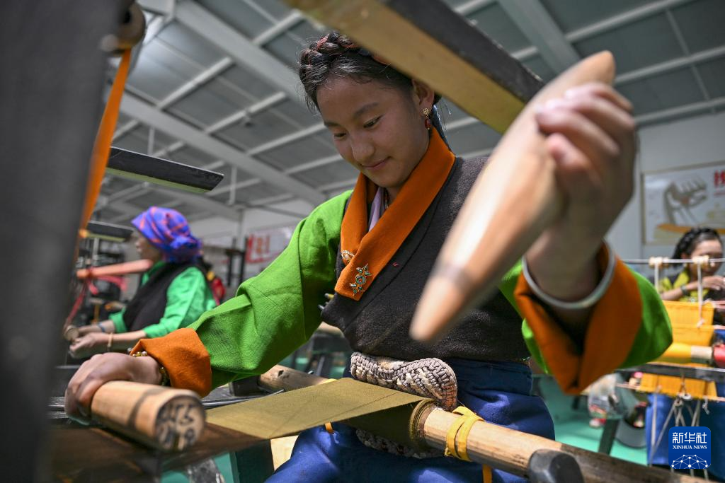 9月1日,在西藏日喀則市仁布縣特色產(chǎn)業(yè)孵化園,亞德細(xì)褐羊毛織品農(nóng)民專業(yè)合作社工作人員在車間里織布。新華社記者 孫瑞博 攝 ??