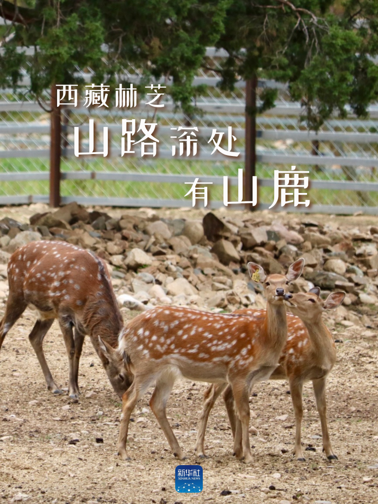 在工布江達縣高原生態(tài)養(yǎng)鹿基地,幾只梅花鹿在玩鬧嬉戲。新華社記者沈曉朦 攝