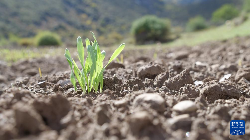 10月21日,西藏嘉黎縣尼屋鄉(xiāng)播種的冬小麥部分已經發(fā)芽。新華社記者魏冠宇 攝