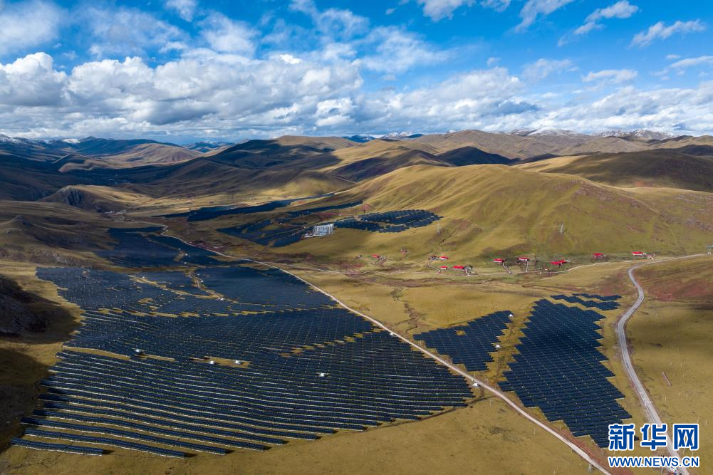 10月19日拍攝的華電西藏江達(dá)牧光互補(bǔ)光伏發(fā)電項(xiàng)目。該項(xiàng)目位于西藏自治區(qū)昌都市江達(dá)縣青泥洞鄉(xiāng)索日村,總裝機(jī)20兆瓦,每年可發(fā)出清潔電能3000萬(wàn)千瓦時(shí),可減少二氧化碳排放3萬(wàn)噸。新華網(wǎng) 旦增努布 攝