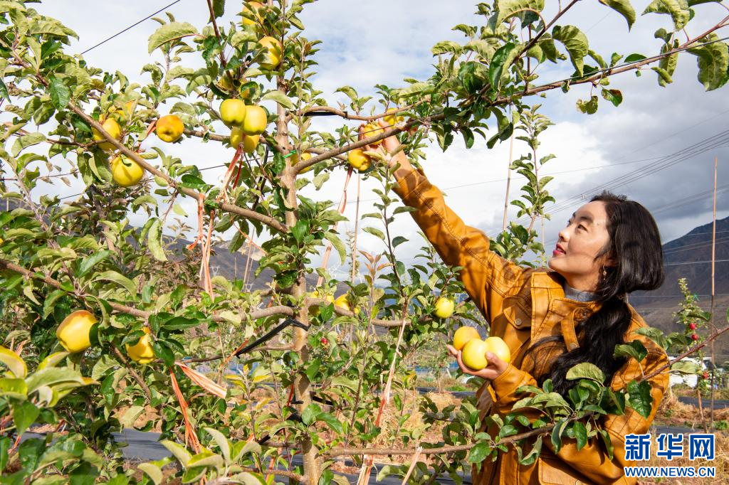 10月12日,西藏昌都市八宿縣白瑪鎮(zhèn)沙木村村民嘎桑曲珍在蘋果園區(qū)采摘。該園區(qū)于2023開(kāi)始陸續(xù)掛果,預(yù)計(jì)2025年進(jìn)入豐產(chǎn)期,今年園區(qū)蘋果產(chǎn)量達(dá)140余噸左右。目前全縣種植蘋果35萬(wàn)余株,總面積4848.95余畝。新華網(wǎng) 旦增努布 攝