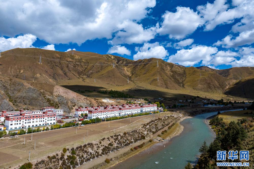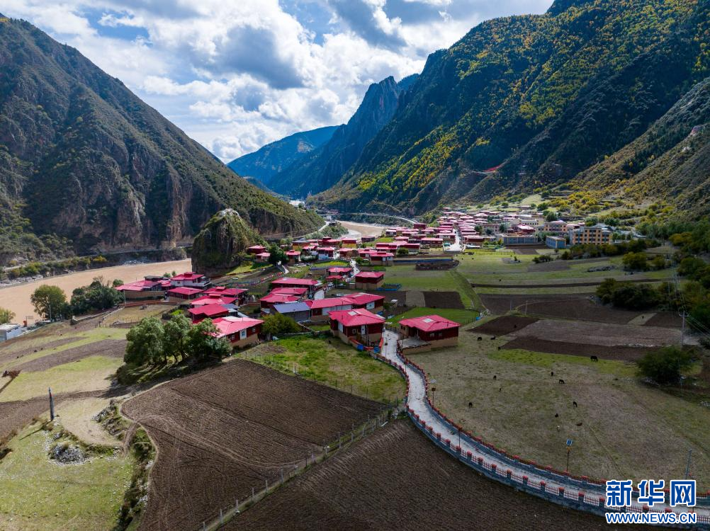 10月21日拍攝的“西藏解放第一村”昌都市江達(dá)縣崗?fù)写宕迕玻o人機(jī)照片)。新華網(wǎng) 旦增努布 攝