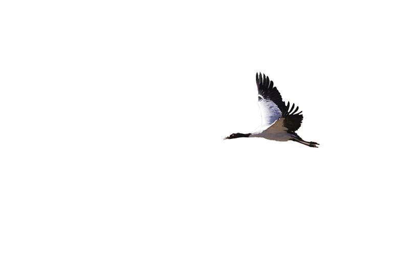 高原精靈黑頸鶴是世界上唯一一種生長、繁殖在高原的鶴類。它們體態(tài)優(yōu)美,身姿挺拔,羽毛黑白相間,頭部和頸部那一抹黑色猶如佩戴的神秘面紗,增添了幾分高貴與神秘。每年10月中下旬,它們都會展開一場跨越千里的越冬之旅。它們飛越千山萬水,來到西藏的濕地、草原和農田中尋找溫暖與食物,續(xù)寫著生命的傳奇。