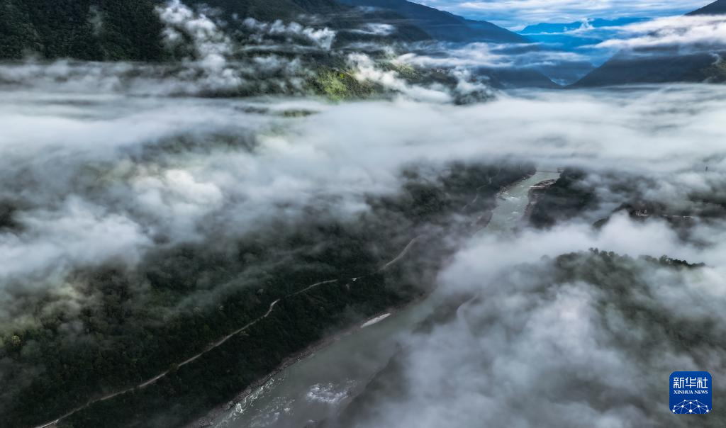 這是11月11日拍攝的墨脫縣云海景觀(無(wú)人機(jī)照片)。新華社記者 普布次仁 攝?