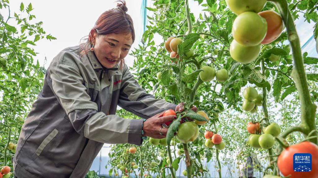 11月22日,在丁青縣農(nóng)業(yè)生態(tài)產(chǎn)業(yè)園,工作人員在采摘西紅柿。新華社記者 楊帆 攝?