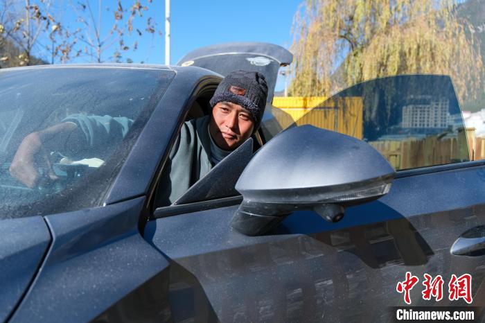 12月17日,來(lái)自江蘇昆山的自駕游客劉兵在西藏波密縣一營(yíng)地內(nèi)休整。中新社記者 江飛波 攝