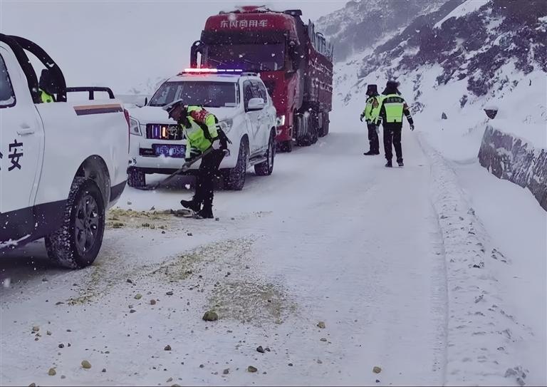 民警除雪保暢。圖由自治區(qū)公安廳交管局提供