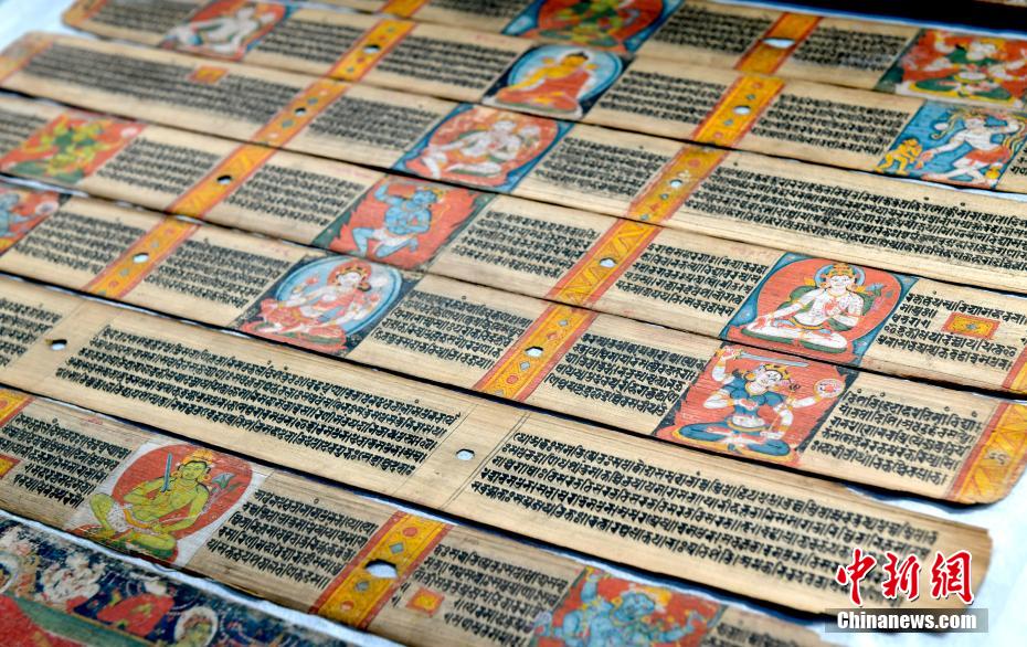 以“見證與守望——鑄牢中華民族共同體意識主題展”為主題的展覽近日亮相西藏自治區(qū)拉薩市布達拉宮雪城珍寶館。本次主題展精選100余件文物珍品,展覽通過文物、古籍及布達拉宮的傳承與發(fā)展,講述各民族交往交流交融的故事。圖為1月2日,展覽中的13世紀《般若八千頌》貝葉經(jīng)寫本。中新社記者 李林 攝