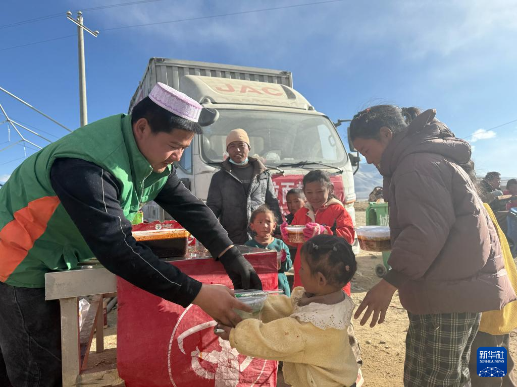 西藏定日6.8級地震發(fā)生后第二天,看到地震的消息,馬杰和朋友立馬帶上物資奔赴災區(qū)救援一線。一行5人從甘肅臨夏出發(fā),驅(qū)車2700多公里,10日到震中后便開始給受災群眾免費做拉面。
