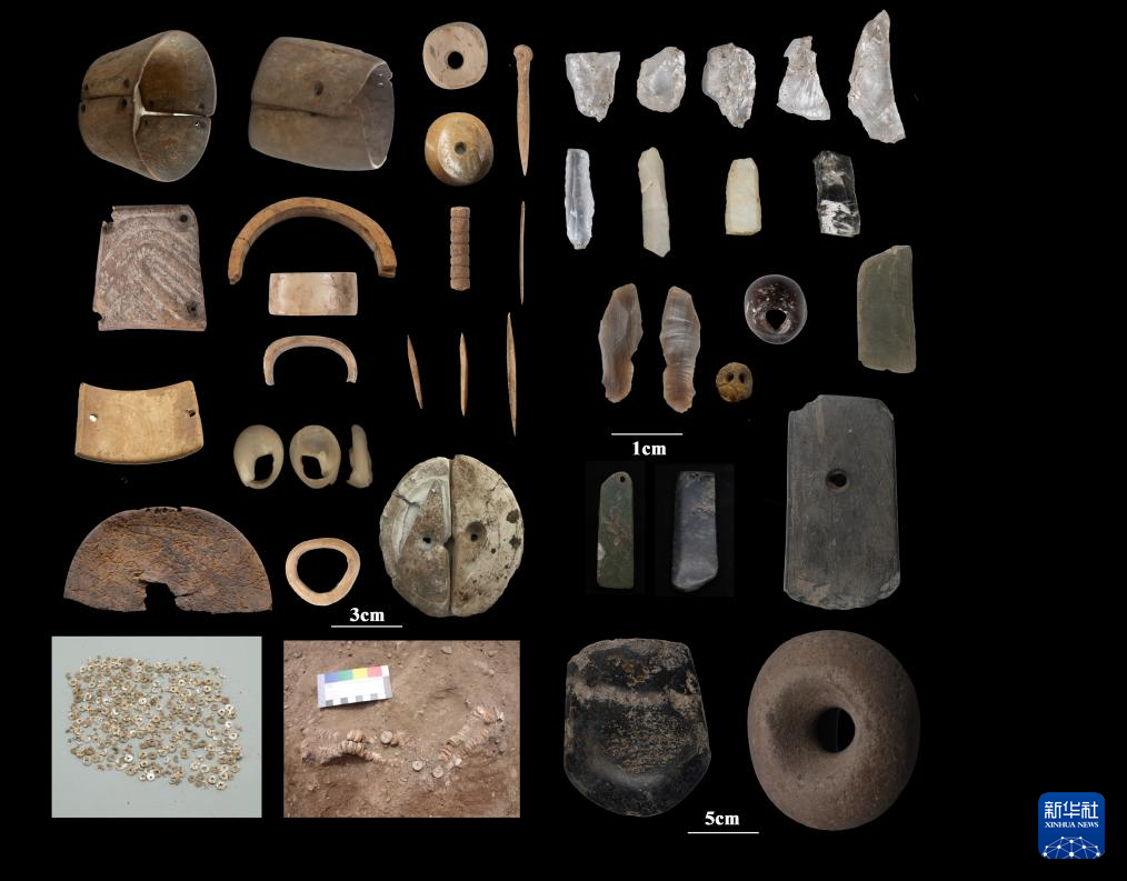瑪不錯(cuò)遺址第一期出土遺存典型骨器、石器、蚌器、滑石珠等。(圖片由西藏自治區(qū)文物保護(hù)研究所提供)