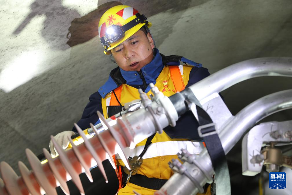 春運期間,接觸網(wǎng)工人劉海軍在拉林鐵路色拉丘隧道內(nèi)為接觸網(wǎng)更換絕緣子。(拉巴次仁攝)