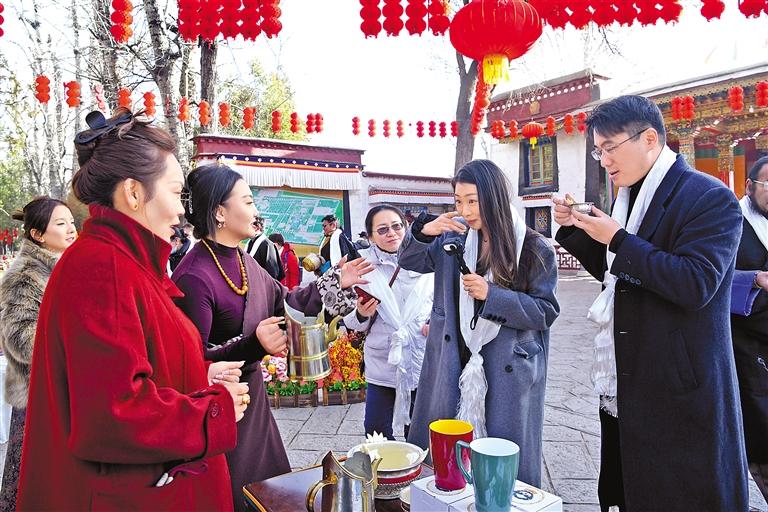 (下轉(zhuǎn)第二版)(緊接第一版) 來(lái)自西安的曹女士剛體驗(yàn)完青稞酒又被工作人員遞上來(lái)的精美文創(chuàng)禮品吸引了眼球。她感嘆:“來(lái)這過(guò)藏歷新年,既能感受傳統(tǒng)藏歷新年的民俗活動(dòng),又能把藏文化帶回家,這樣的新年太有意義了!”