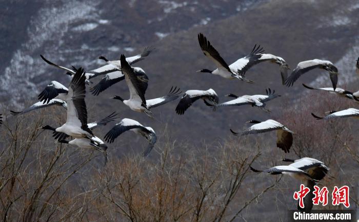 黑頸鶴是全球十五種鶴類中唯一在高原地區(qū)繁殖和越冬的鶴類,被譽為“高原神鳥”,屬中國國家一級保護(hù)動物。每年10月中下旬左右,黑頸鶴陸續(xù)飛抵雅魯藏布江中游河谷等地越冬。圖為3月8日,棲息在西藏拉薩林周縣的黑頸鶴。中新社記者 李林 攝