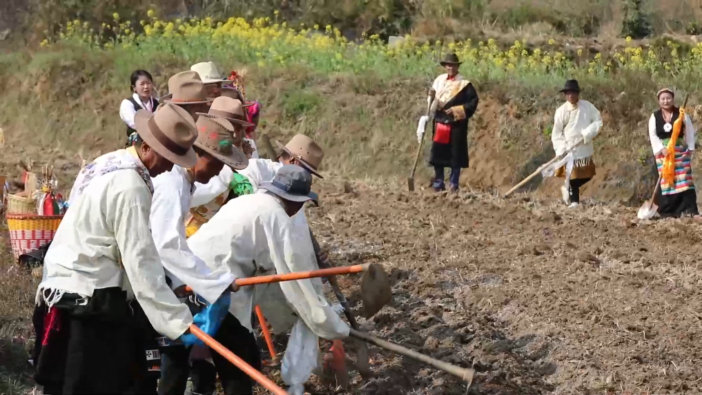 儀式現(xiàn)場,村民們遵循傳統(tǒng)習(xí)俗,唱起悠揚(yáng)的豐收歌,在田間地頭犁地播種。