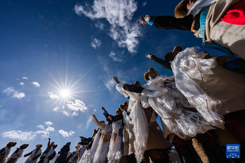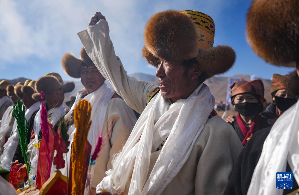 3月16日,拉孜縣曲下鎮(zhèn)土林村村民身著節(jié)日盛裝參加春耕典禮。新華社記者 姜帆 攝