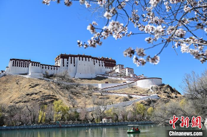 圖為帕邦喀周圍盛開的桃花和遠(yuǎn)處的布達(dá)拉宮。貢嘎來松 攝