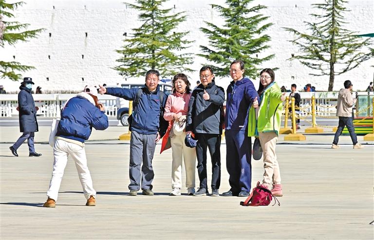 圖為游客正在布達(dá)拉宮廣場(chǎng)拍照留念。 記者 唐斌 攝