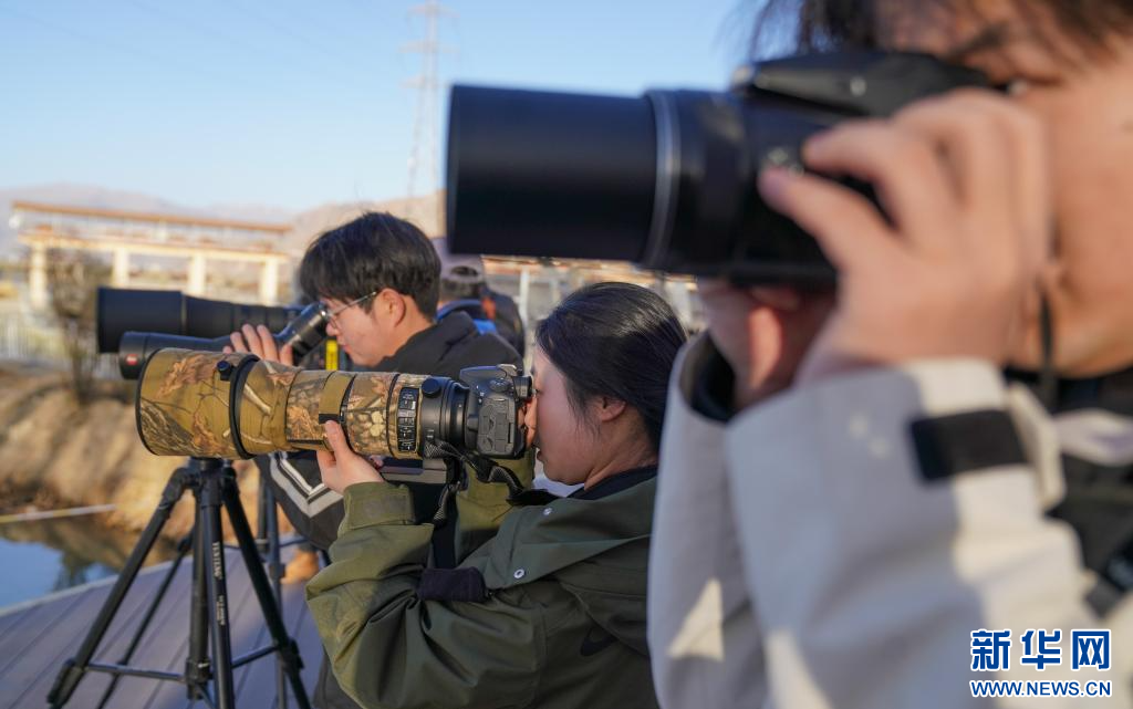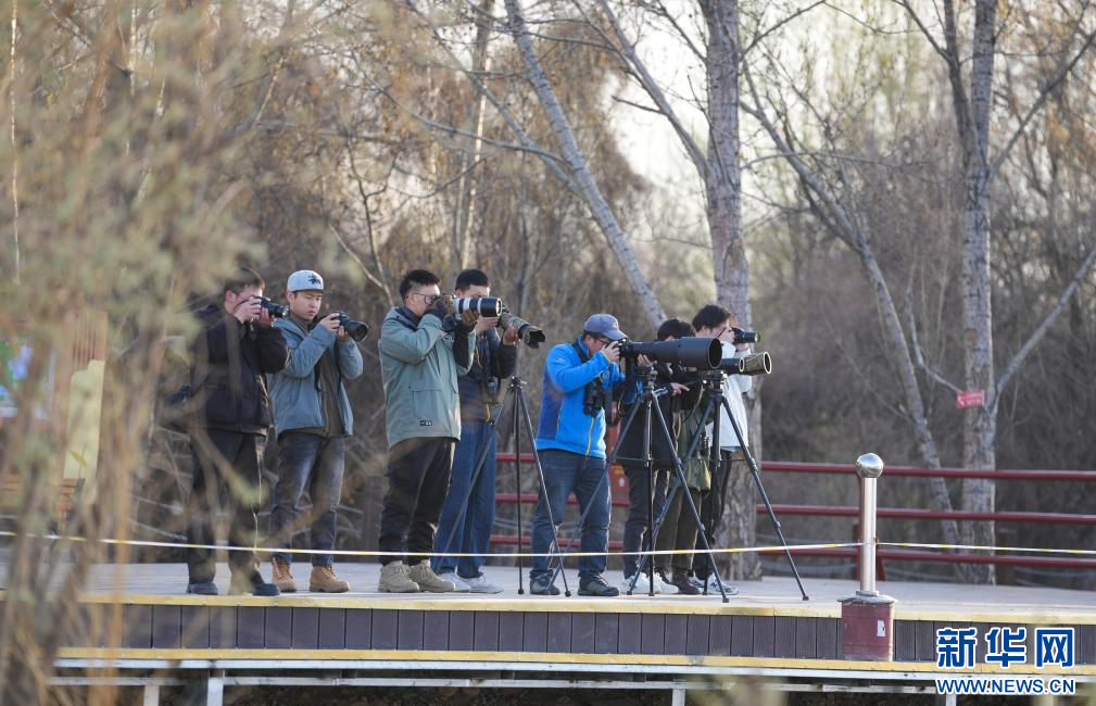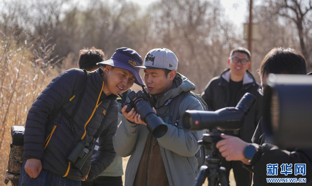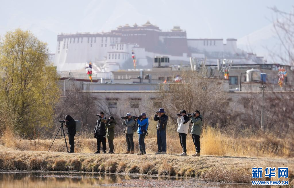 3月29日,參加采風(fēng)活動的成員在拉魯濕地觀鳥拍照。(新華社記者 晉美多吉 攝)