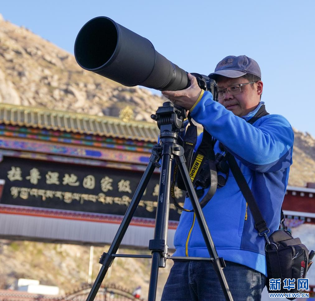 西藏自治區(qū)高原生物學(xué)會成員楊樂在拉魯濕地進(jìn)行拍攝。