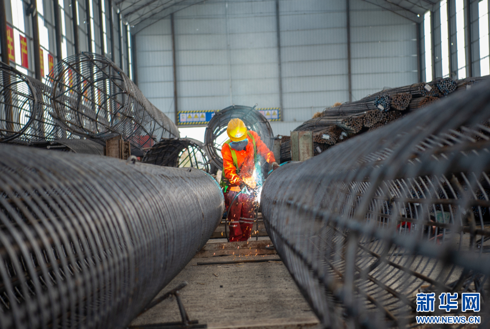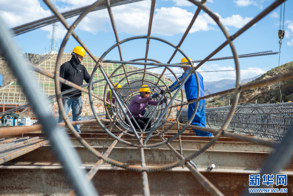 這是5月12日拍攝的拉薩高新大橋施工現(xiàn)場(chǎng)。新華網(wǎng) 旦增努布 攝
