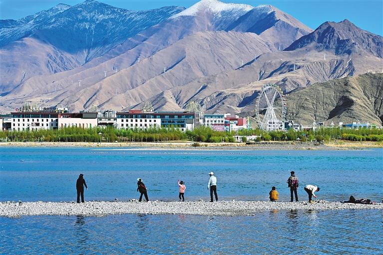 圖為拉薩市民和游客在公園河畔游玩。記者 白瑪澤旺 唐斌 攝
