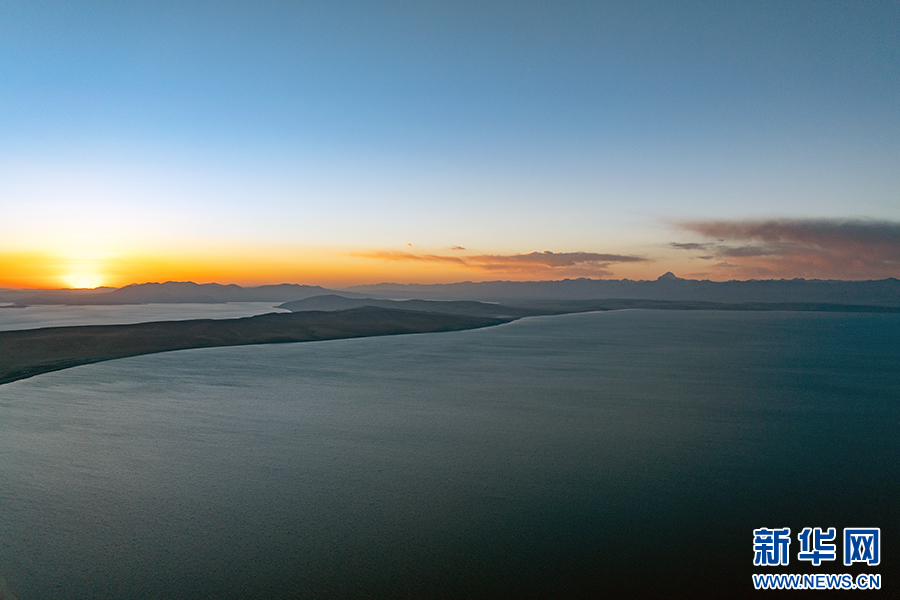 夕陽下的瑪旁雍錯(6月9日攝,無人機(jī)照片)。新華網(wǎng) 旦增努布 攝