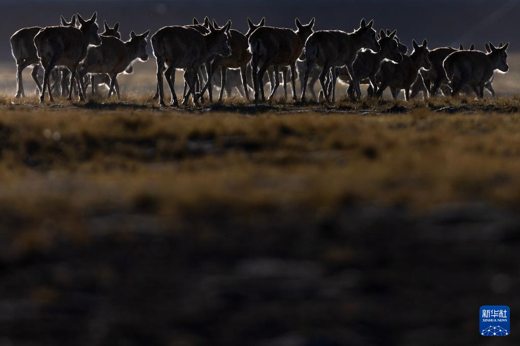 在羌塘國(guó)家級(jí)自然保護(hù)區(qū)核心區(qū)拍攝到的雌性藏羚羊群(6月10日攝)。新華社記者 旦增尼瑪曲珠 攝 ??