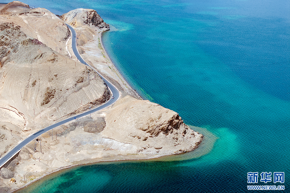 班公湖一角(6月15日攝,無人機照片)。新華網(wǎng) 旦增努布 攝