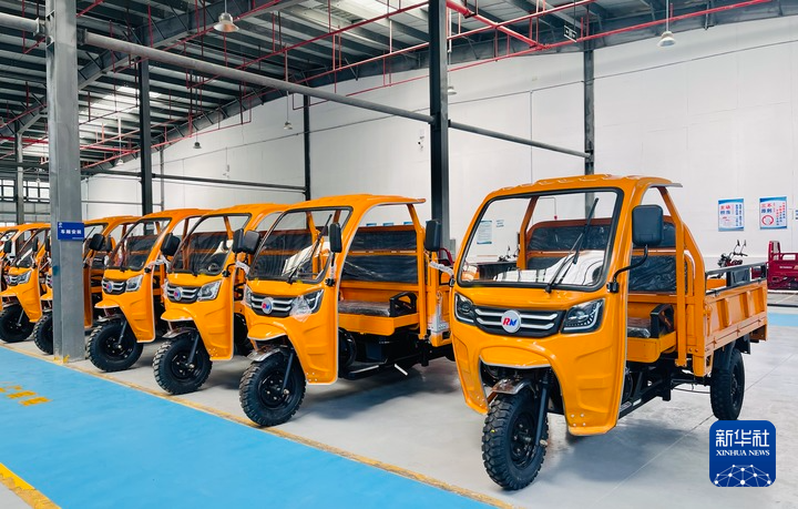 6月8日,西藏吉隆瑞尼機(jī)械制造有限公司倉(cāng)庫(kù)內(nèi)等待出口的三輪車。新華社記者蔣夢(mèng)辰 攝