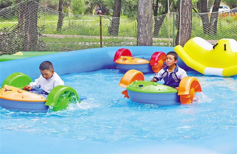 圖為小朋友在林卡里玩水嬉戲。記者 旦增蘭澤 攝