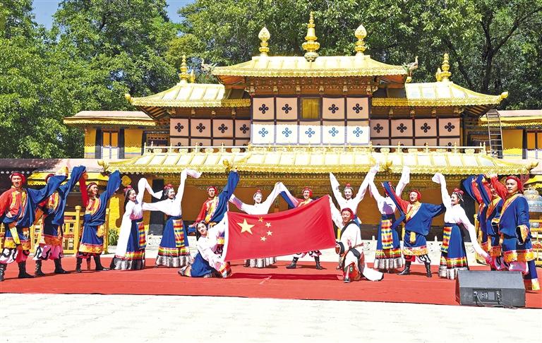 圖為那曲市色尼區(qū)藝術(shù)團(tuán)表演的舞蹈《祖國母親》。記者 旦增蘭澤 攝