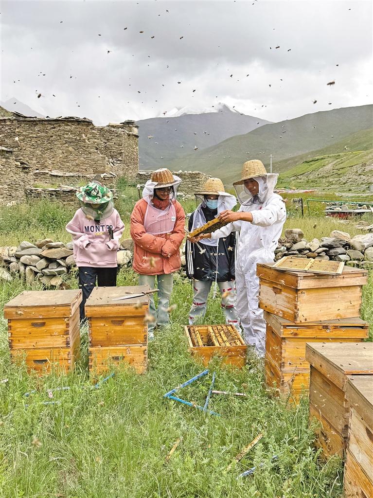 “蜂”產(chǎn)業(yè)激活鄉(xiāng)村振興“甜蜜動(dòng)能”。走進(jìn)卡珠村的德康瓦蜜蜂養(yǎng)殖專業(yè)合作社養(yǎng)殖基地,一排排蜂箱整齊擺放,成群的蜜蜂穿梭在花叢間,振翅的嗡嗡聲交織成一曲熱鬧的豐收曲。負(fù)責(zé)人尼瑪桑旦,一位返鄉(xiāng)創(chuàng)業(yè)的95后大學(xué)生,正帶領(lǐng)員工們忙碌著:“我們創(chuàng)立了‘阿媽準(zhǔn)’藏蜜品牌,也在銷售風(fēng)干牛肉、人參果、蕁麻草等特色產(chǎn)品,通過電商平臺(tái),我們的‘哲古味’已經(jīng)賣到了全國(guó)。去年銷售額突破了115萬元,還帶動(dòng)了周邊10多戶群眾增收致富?!边@間小小的加工坊,正是哲古鎮(zhèn)推動(dòng)傳統(tǒng)產(chǎn)業(yè)與現(xiàn)代市場(chǎng)接軌的生動(dòng)縮影。