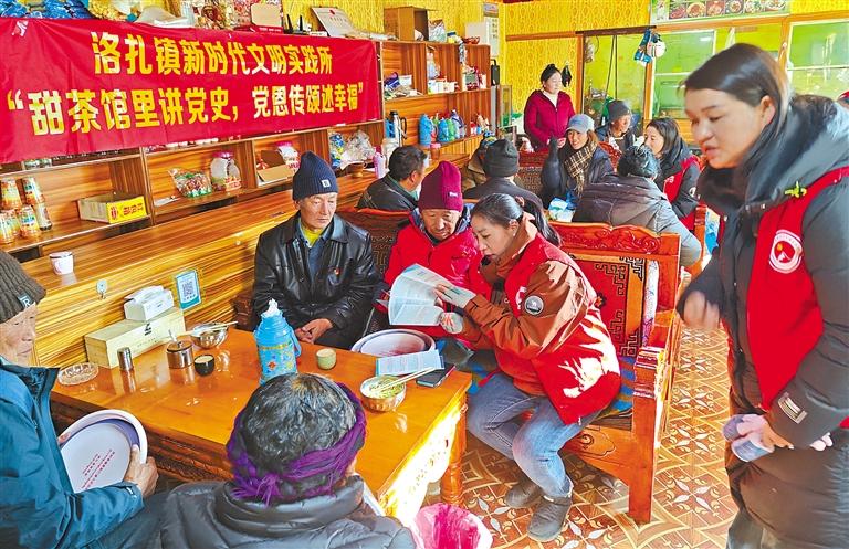 洛扎縣洛扎鎮(zhèn)新時代文明實踐所開展“甜茶館里講黨史 黨恩傳頌述幸?!敝黝}宣講活動。