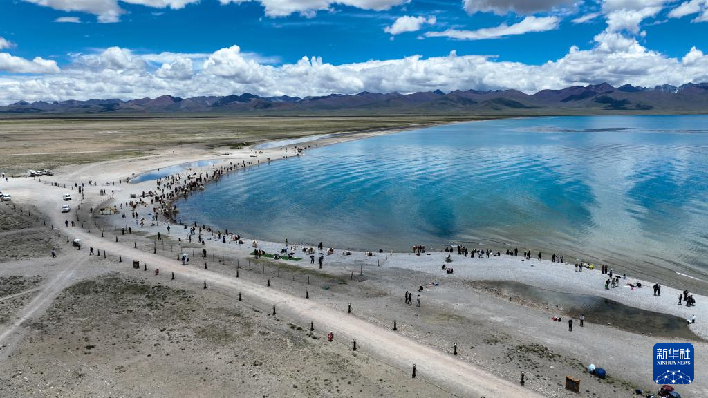 7月16日,在西藏拉薩市當雄縣納木錯扎西島景區(qū),來自世界各地的游客享受著夏日納木錯清爽的風。納木錯湖面海拔4718米,是世界上面積超過1000平方公里的湖泊中海拔最高的湖泊。2024年,納木錯扎西島景區(qū)接待游客約40萬人次。 ??