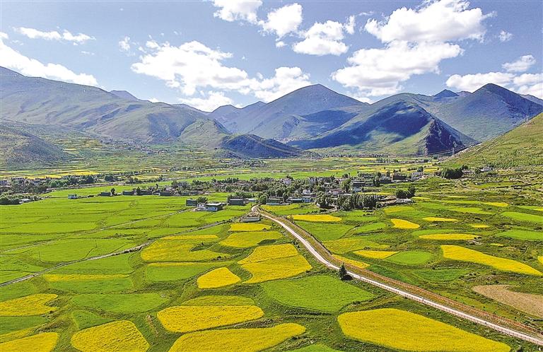 盛夏時節(jié),驅(qū)車行駛在拉薩市墨竹工卡縣的鄉(xiāng)村公路上,兩側(cè)金黃的油菜花海與黝黑的柏油路相映成趣,滿載青稞的農(nóng)用車與色彩鮮艷的農(nóng)村客運班車擦肩而過,勾勒出一幅流動的豐收圖景。這樣的景象在如今的西藏鄉(xiāng)村已成為常態(tài),一條條嶄新的公路正悄然改變著高原大地的面貌。