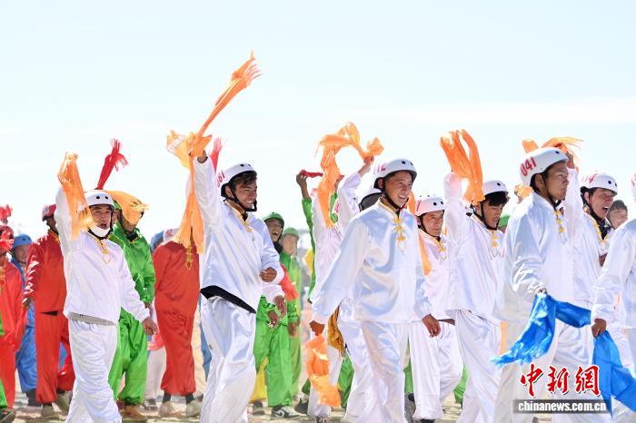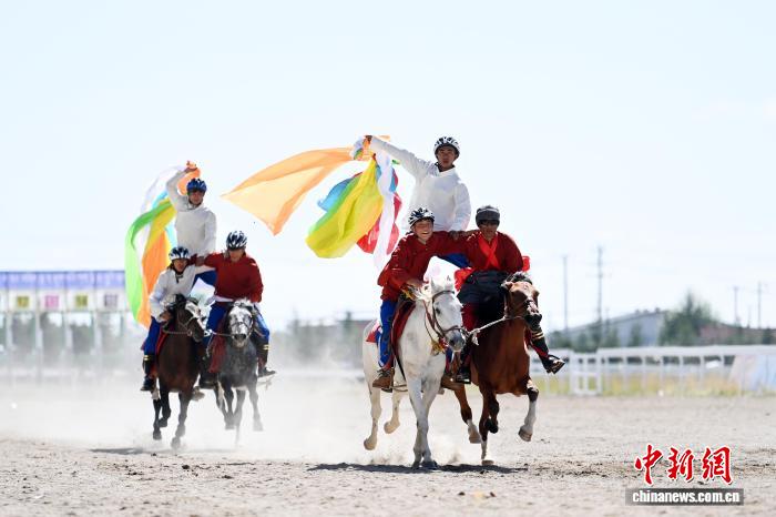 圖為開幕式現(xiàn)場(chǎng)賽馬選手入場(chǎng)。中新社記者 九美旦增 攝