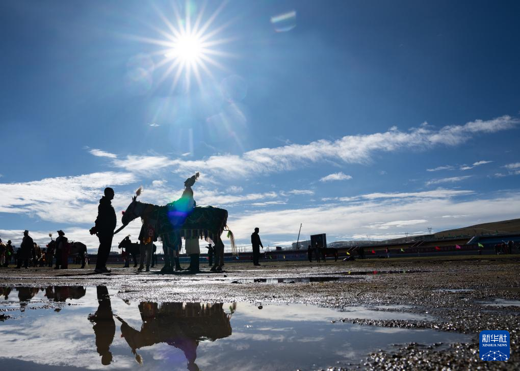9月7日,騎手在傳統(tǒng)大跑項(xiàng)目前等待開賽。新華社記者 丁增尼達(dá) 攝